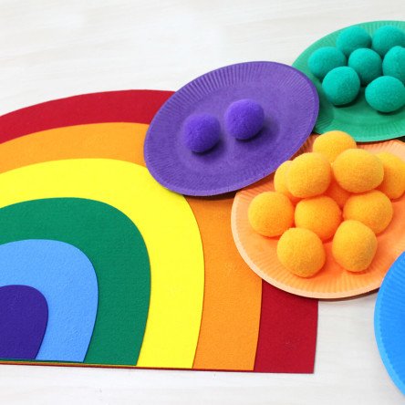 무지개를 색깔 폼폼이와 매칭해보며 무지개 색깔을 언어로 표현해보세요. 소근육과 함께 색깔 인지 능력이 발달하고 성취감 경험할 수 있습니다.