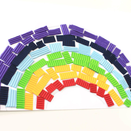 울퉁불퉁한 느낌을 가진 골판지는 아이에게 특별한 놀이 친구랍니다. 얇게 잘린 띠 골판지는 아이가 손쉽게 만들 수 있어 더욱 편리하지요. 다양한 색깔로 이루어진 "색깔 띠 골판지"로 우리 아이에게 특별한 만들기 시간을 선물해 주세요!