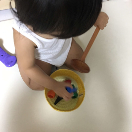 매트에 놀잇감을 넣고 빼며 다양한 색깔을 탐색하고, 눈과 손의 협응력이 발달합니다.