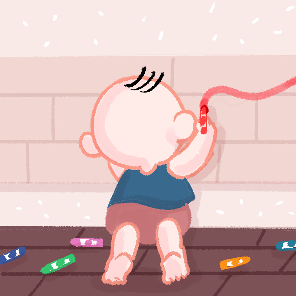 - 아기에게 크레용을 보여주고 자유롭게 탐색합니다.