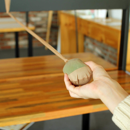 - 지관에 폼폼이가 채워지면 다시 풍선을 잡아당겨 터트립니다.