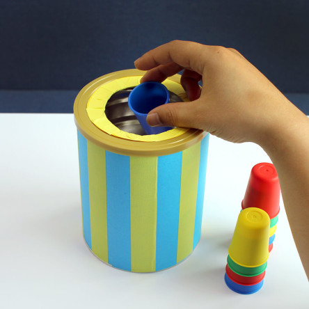 - 아이가 나머지 폼폼이를 상자 구멍 위에 모두 올리게 합니다.