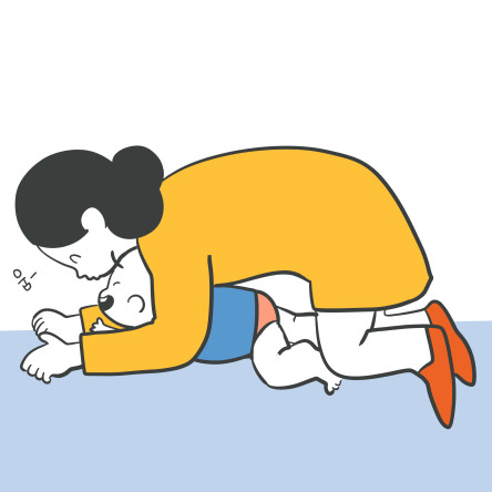 3. 아기가 두 팔로 엄마의 다리를 감싸보도록 하고 등을 받쳐 넘어지지 않도록 합니다.