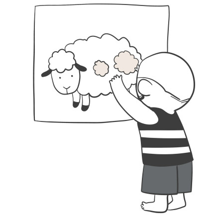 - 솜을 떼어내어 목공풀 위에 붙입니다.솜을 조금씩 떼어 뭉친 후 붙이면 더 잘 붙는답니다.