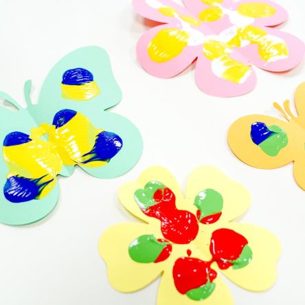 - 나비모양의 부채와 모양콘, 채색 도구로 부채를 어떻게 완성할지 이야기 나누어봅니다.종이부채는 양면으로 되어있어, 원하는 곳에 자유롭게 꾸밀 수 있어요.