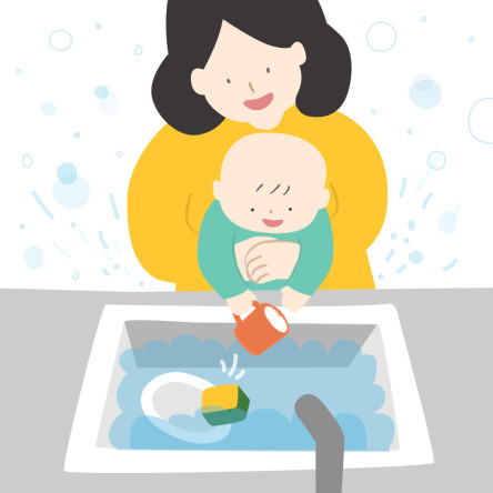 - 스스로 홈 하드바를 떼어보는 아기의 행동을 격려해 줍니다.