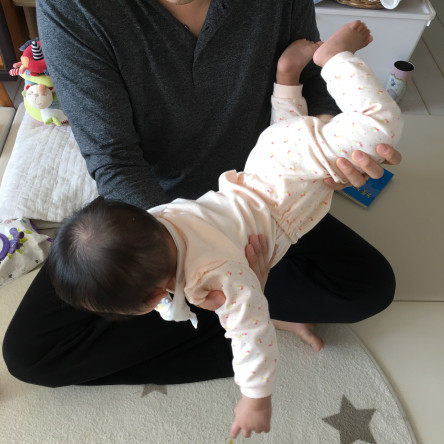 3. 아기가 손의 힘으로 잡을 수 있도록 도와주세요.