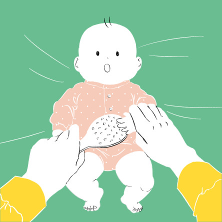 - 아기 눈 앞에서 움직이는 헝겊책을 보여줍니다. 그리고 아기 손 쪽으로 가까이 움직여줍니다.