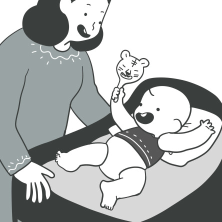 3. 아기가 딸랑이를 향해 손을 뻗으면 딸랑이를 쥐어볼 수 있도록 격려해봅니다.
