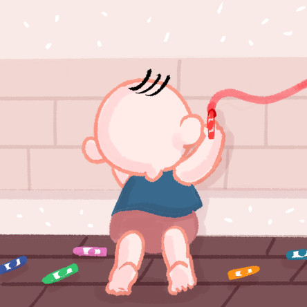![]() | 차이야! 빨강색 크레용으로 끼적이기를 하구 있구나. |