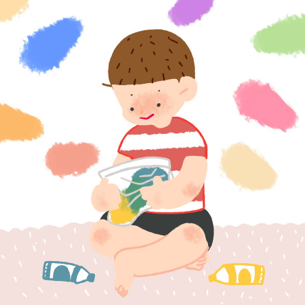 ![]() | (지퍼백 속에 물감을 짠 도화지를 넣은 후) 물감을 손으로 꾹꾹 눌러 볼까? |