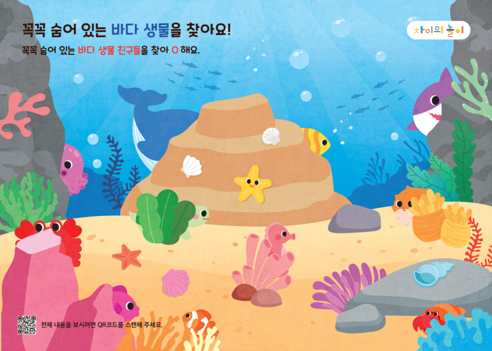 - 놀이에 필요한 재료를 준비하고, 놀이 방법을 이야기 나눕니다.바다 생물의 이름과 특징 등에 대해 이야기를 나누어 보세요.