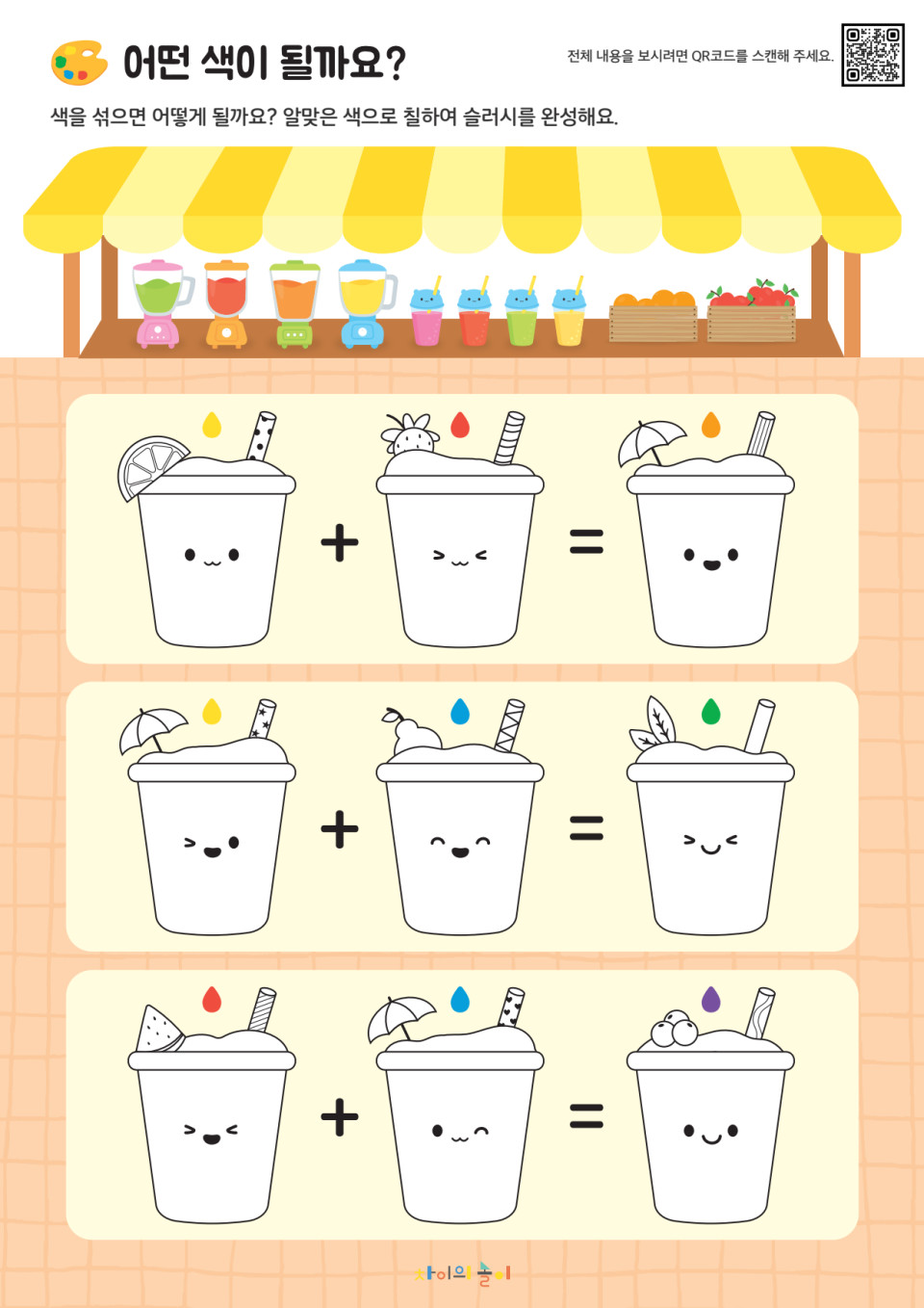 ![]() | (완성된 카드를 보며) 우아! 동물 친구들이 시원한 여름을 보내고 있는 것 같아! |
