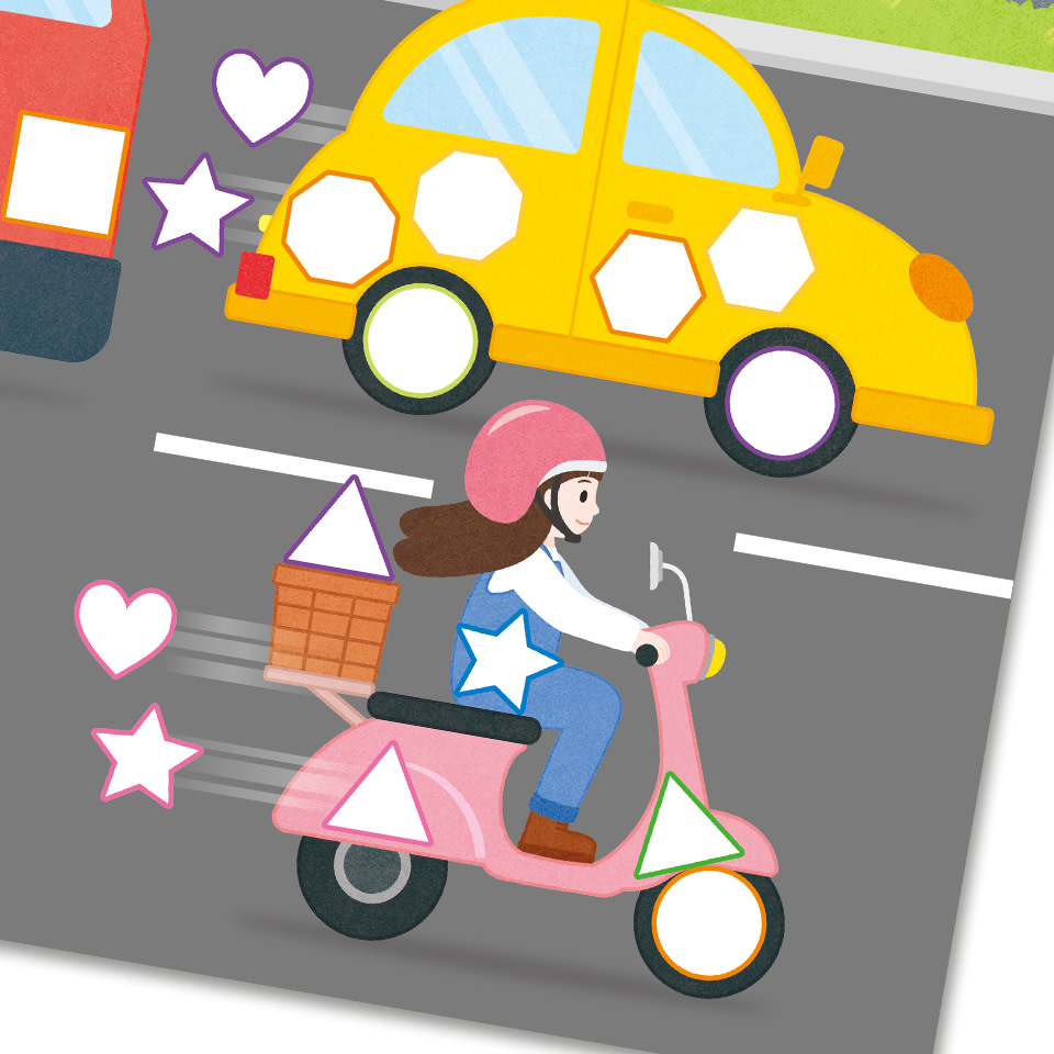 ![]() | 차이가 찾은 도형 스티커를 그림 위에 붙여 보자. |