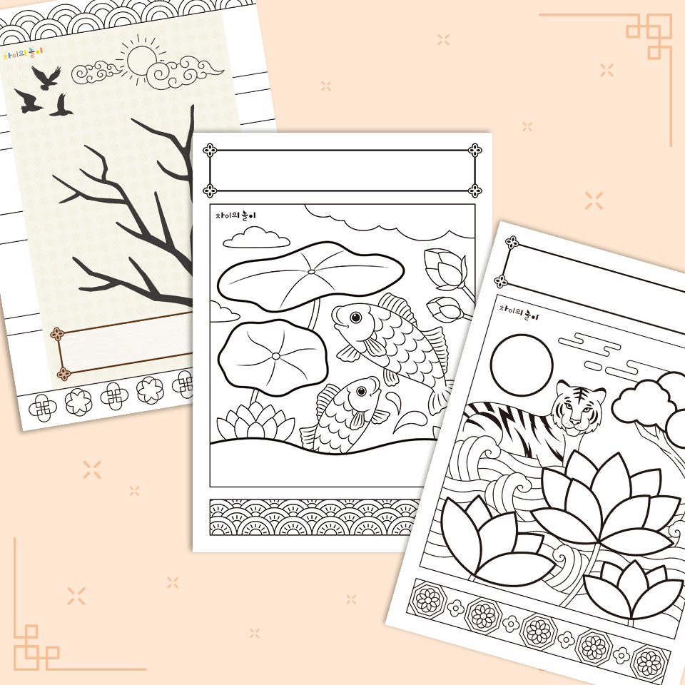 new✨ 전통 민화 습자지 색칠놀이 3종 (화조도/어해도/산호도 중 택 1)