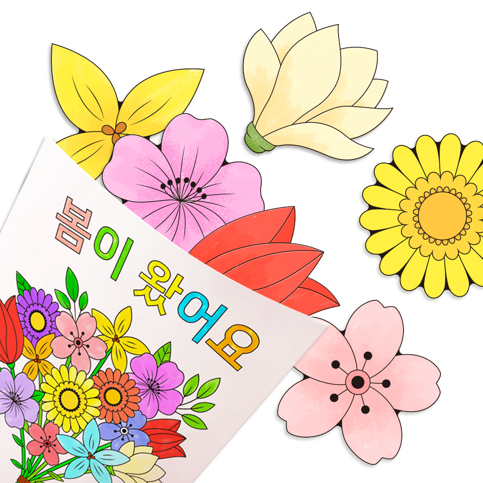 봄꽃 봉투 전개도 1장, 봄꽃 활동지(봄꽃 6개) 1장놀이 방법