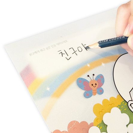 ![]() | 친구에게 하고 싶은 말을 적는 칸도 있구나. 차이는 친구에게 어떤 말을 전하고 싶니? |