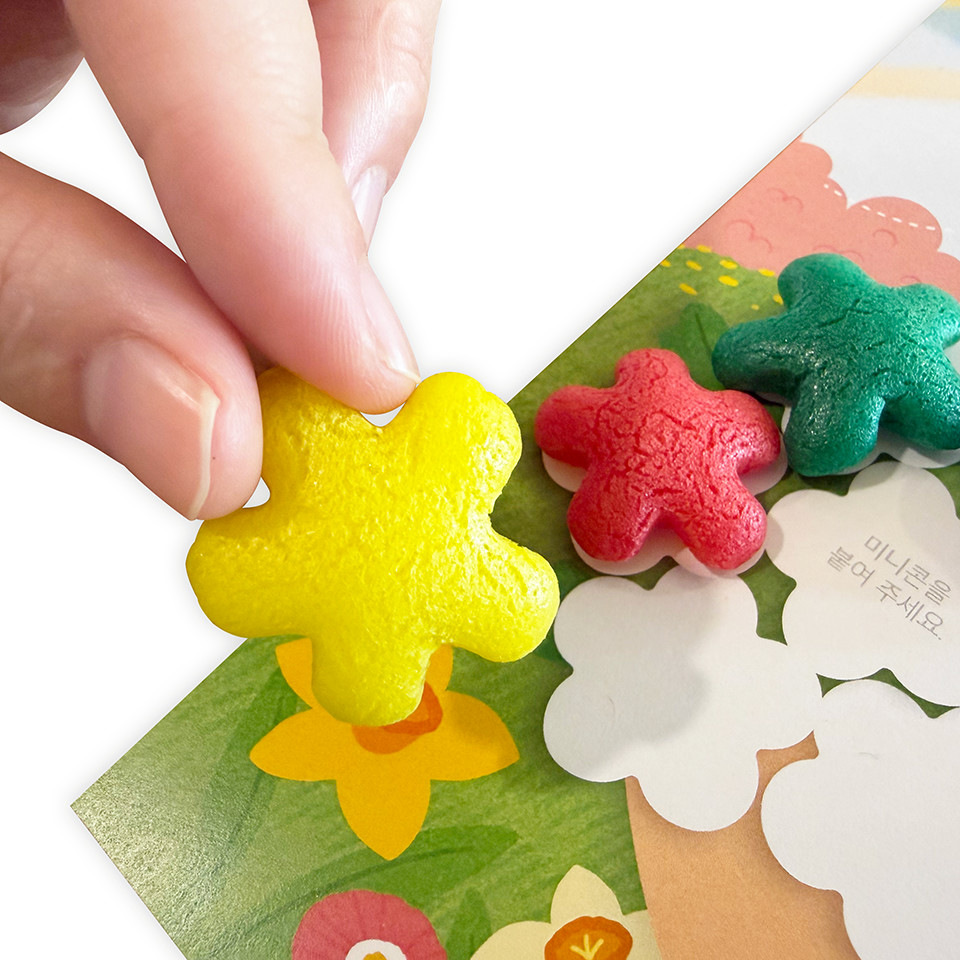 - 꽃 도안 위에 미니콘을 붙여 봄꽃을 완성합니다.