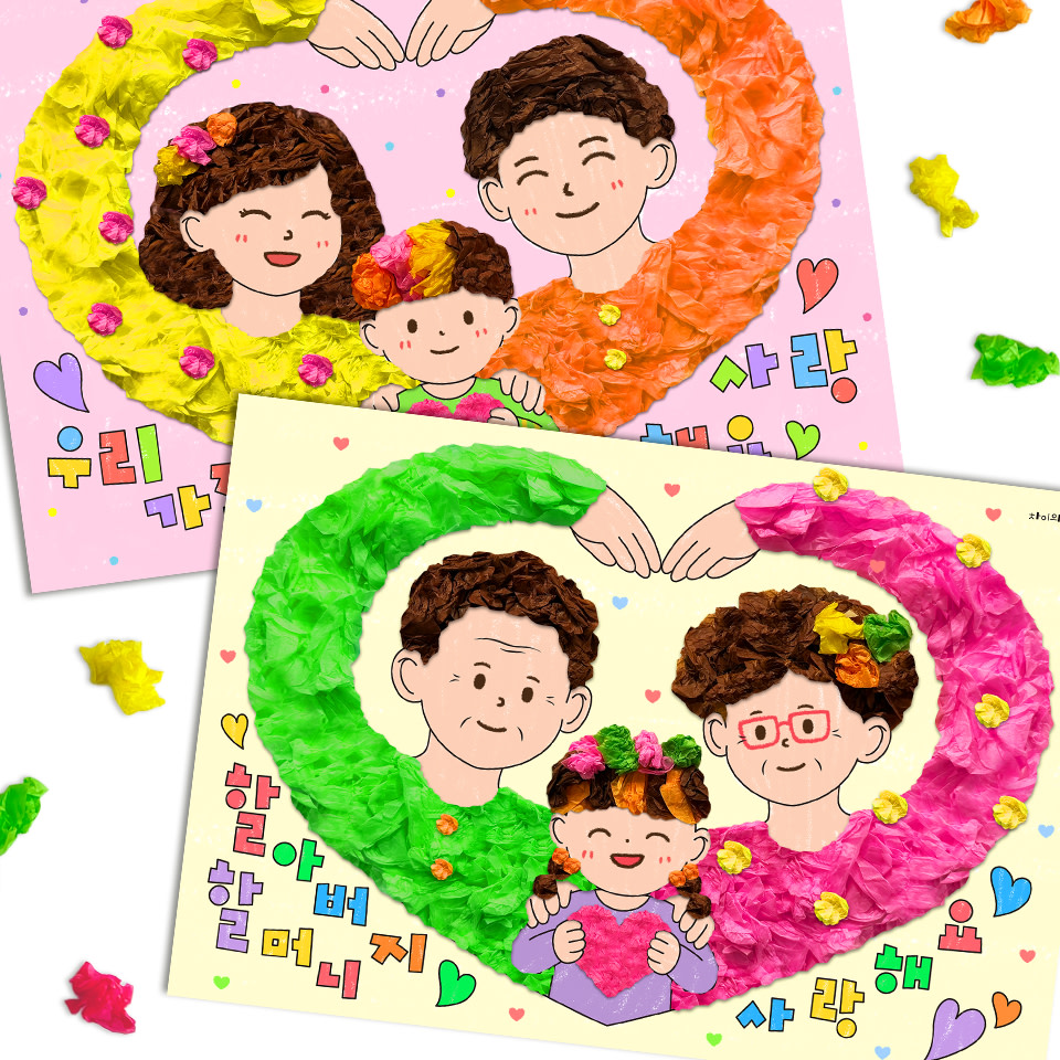 - 완성된 작품을 교실에 전시하고 친구들과 함께 감상하며, 가족에 대한 마음을 이야기 나눕니다.