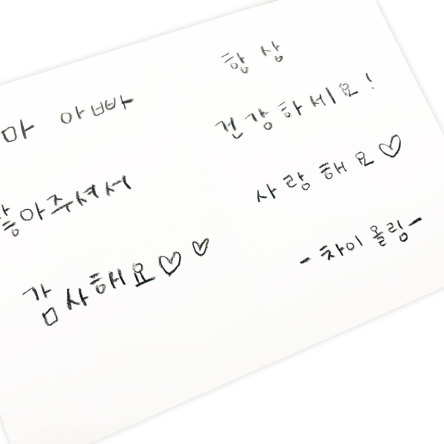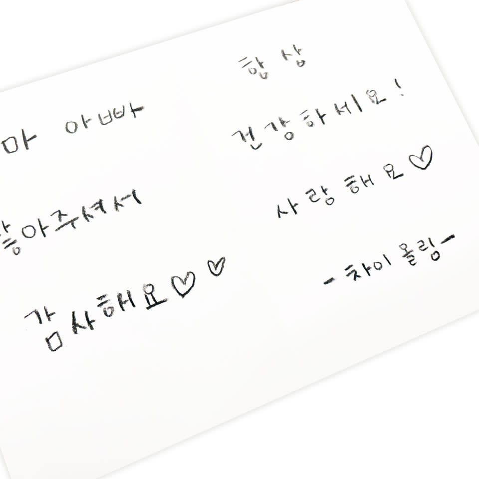 ![]() | 부모님께 하고 싶은 말을 적는 칸도 있구나. 차이는 부보님께 어떤 말을 전하고 싶니? |