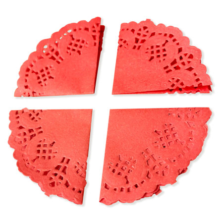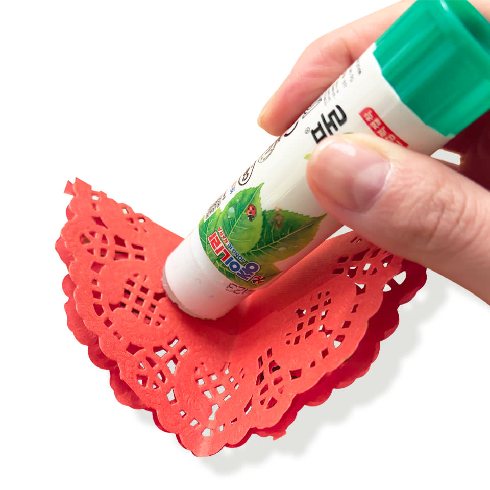 - 도일리 페이퍼를 두 번 접고, 안쪽에 풀칠을 해서 부채꼴 모양을 만들어요.