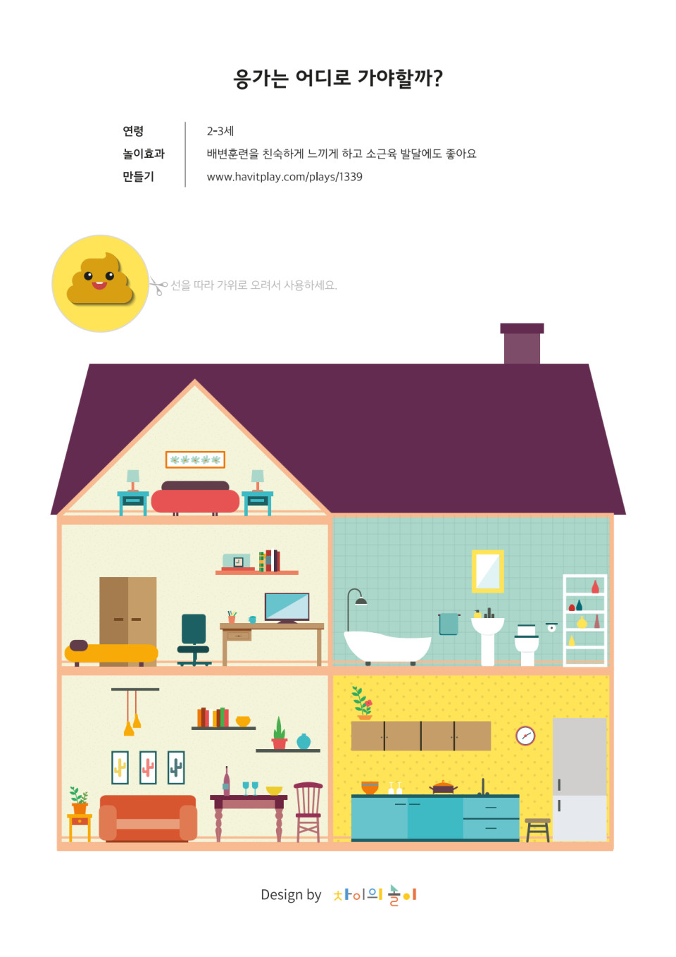 1. 집 모양이 그려진 (화장실 포함) 활동지를 인쇄합니다.