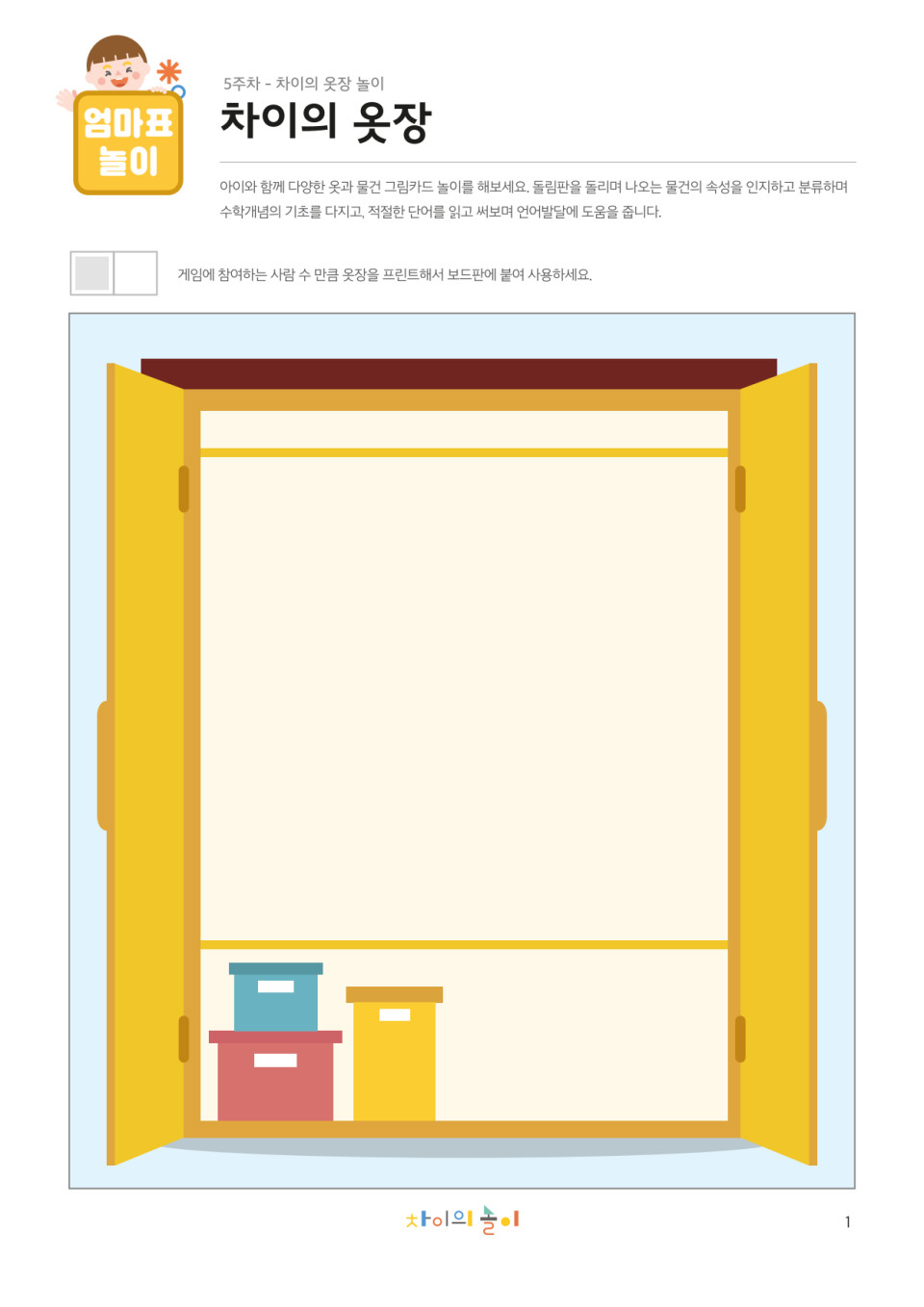 1. 옷장 활동지를 아이와 각각 한 장씩 나누어 가져봅니다.