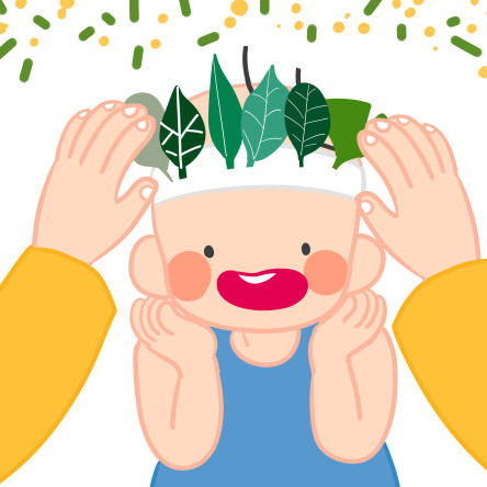 ![]() | (아기의 머리 위에 종이접시를 씌워주며) 우리 아기가 멋진 왕관을 썼네. |