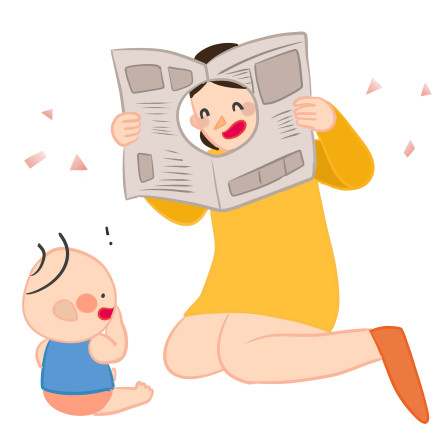 ![]() | (종이 커튼 사이로 얼굴을 보이며) 까꿍! 엄마는 여기에 있었지! |