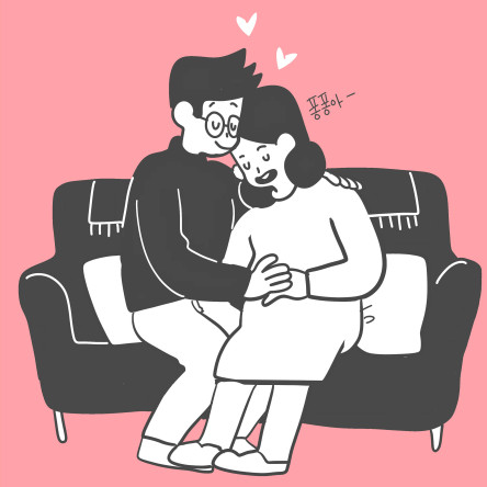 1. 예비 엄마는 편안한 공간에 기대앉아봅니다.