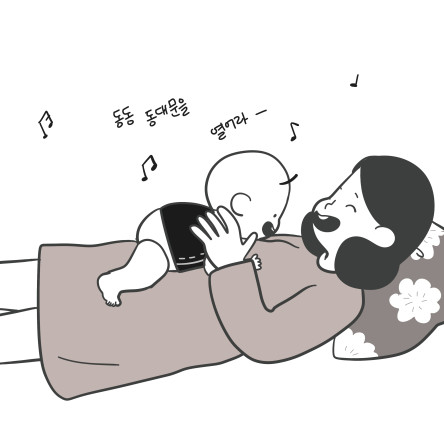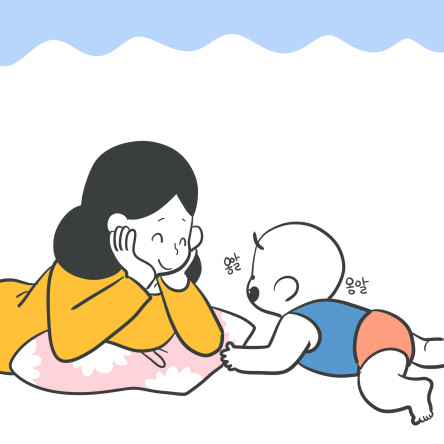 ![]() | (아기가 에어캡을 잡고 있을 때 엄마가 살짝 당기며) 아이코 엄마 쪽으로 와버렸네! |