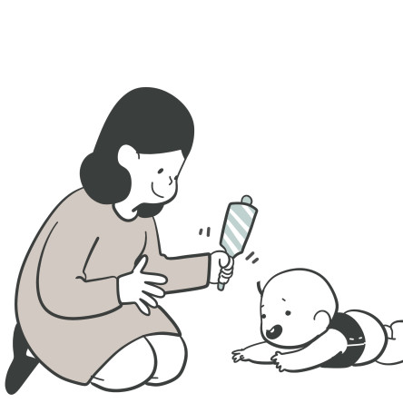 - 손에 쥐기 편하고 부딪혔을 때 소리가 나는 놀잇감을 준비해주세요.