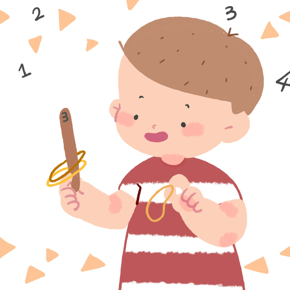 아이스크림 막대에 적힌 숫자만큼 고무줄을 끼워보며 숫자와 양의 관계를 이해합니다.