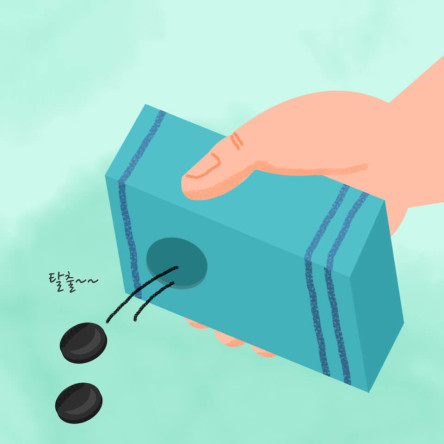 ![]() | (차이가 공을 넣으면) 쏙! 차이가 공을 잠자리채에 쏙 넣어주었구나! |