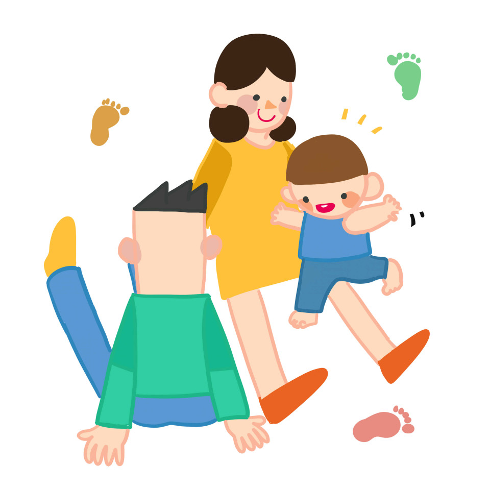아빠와 엄마 다리 사이를 아이가 폴짝폴짝 뛰며 지나가도록 해 보세요. 아이는 이제 빠르게 달릴 수도 있고 점프를 할 수도 있지요. 하지만 여전히 점프 연습은 아이가 꾸준히 해야 하는 운동입니다. 다리 장애물을 넘어서 지나가는 동안 아이는 전신의 근육을 키우고 균형감각을 연습하게 됩니다.
