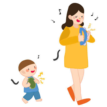 동요를 들으며 리듬에 맞추어 자유롭게 탬버린을 흔들며 리듬 감각이 길러지고, 신체 능력이 향상됩니다.