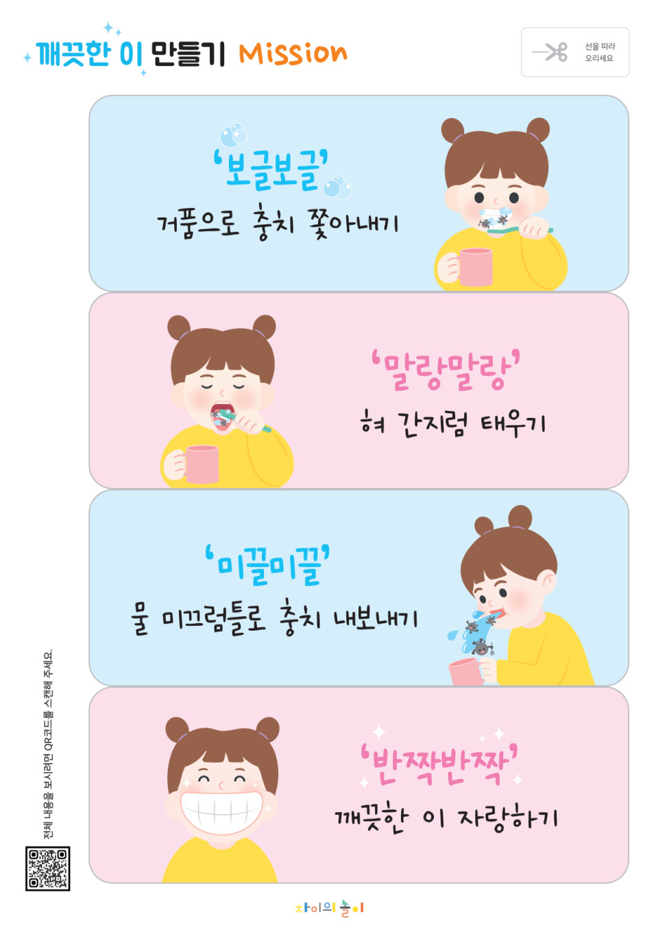 - 아이에게 양치 판을 보여주며 흥미를 유발합니다.