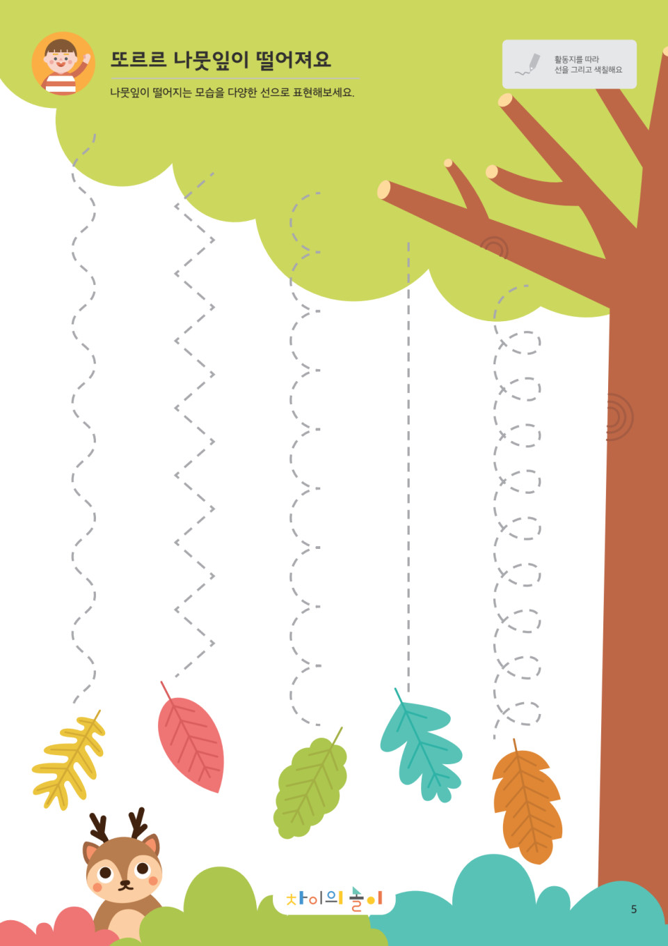 나뭇잎이 떨어지는 모습을 선으로 표현해보세요.