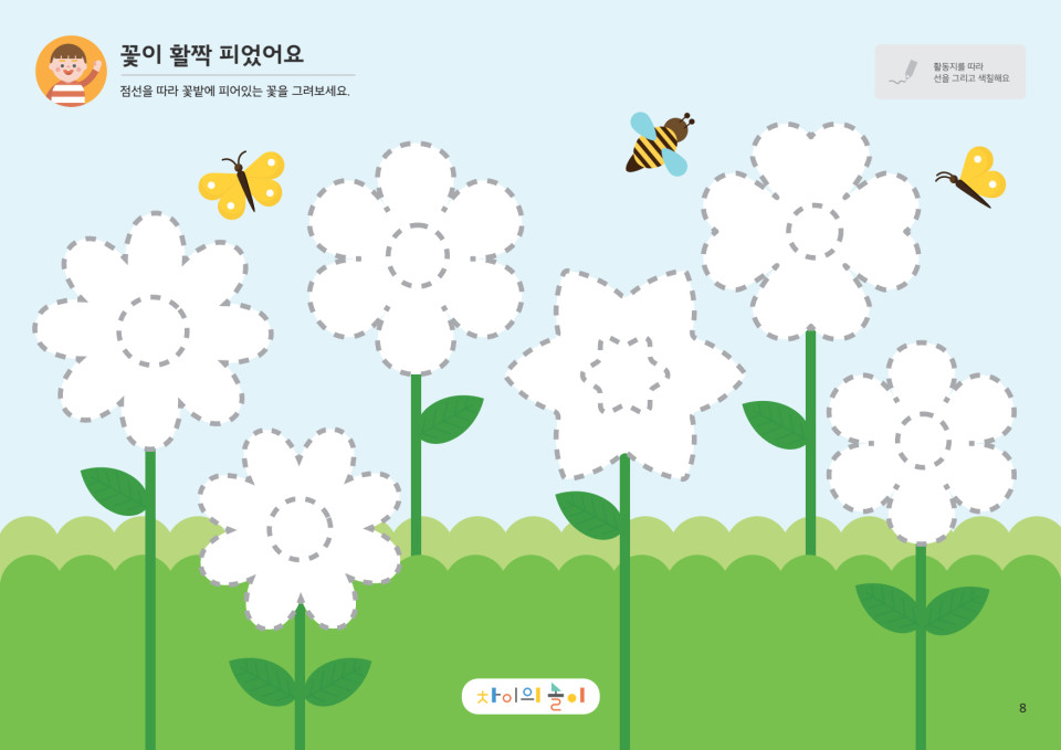 ![]() | 꽃 모양을 따라서 그려볼까? |