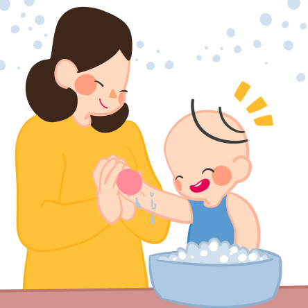 거품의 색과 느낌을 감각적으로 탐색하며 인지가 발달하고, 욕실 벽에 자유롭게 그림을 그리며 전신의 발달을 돕습니다.