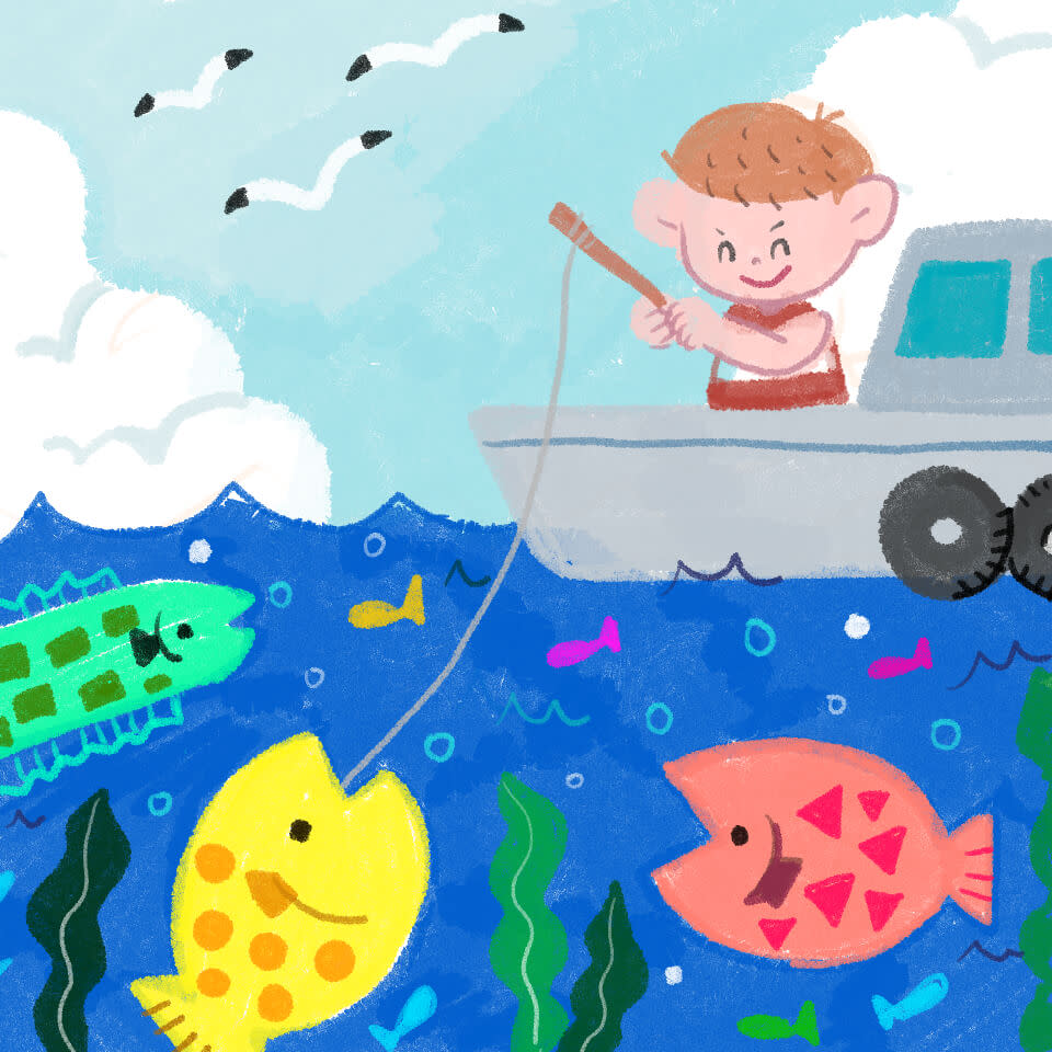 제시한 모양이 그려진 물고기를 잡으며 도형 인지력을 높이고, 신체 조절력을 키워줍니다.