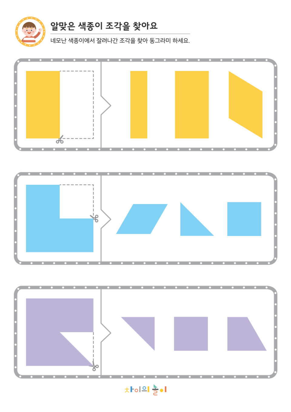 알맞은 색종이 조각을 찾아요