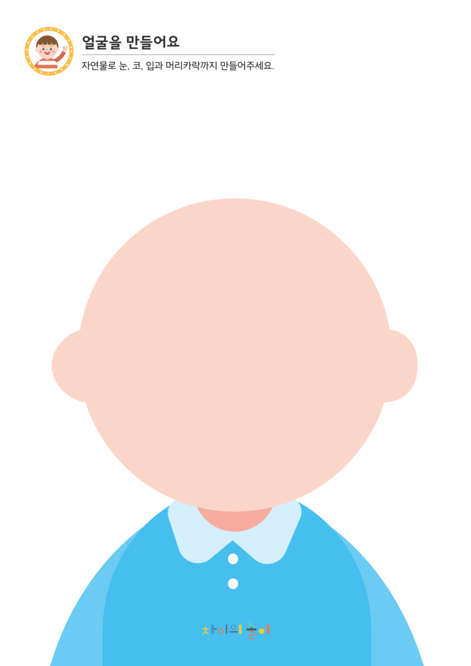 - 활동지를 보여주며 자연물로 친구의 얼굴을 꾸며보자고 제안합니다.