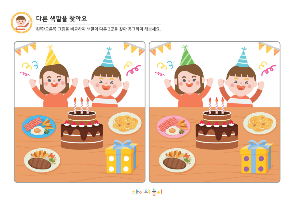 3. 색깔이 다른 3곳을 찾아 동그라미 표시를 합니다.