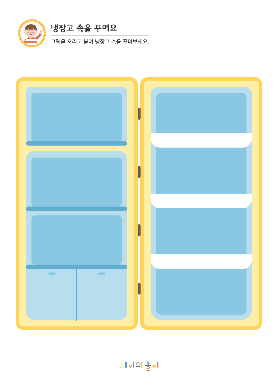 다양한 그림을 오리고 붙여 냉장고 속을 꾸며보세요.