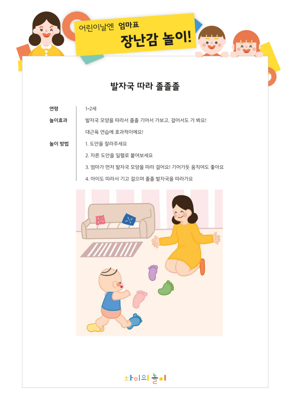 ![]() | (아기가 엄마를 따라 걷기 시작하면 격려하며) 엄마는 발자국을 따라 이렇게 걸어봐야지~ |
