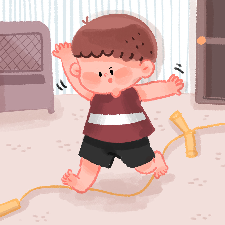 줄넘기 줄을 따라 걸으며 균형감각과 신체발달을 돕습니다.