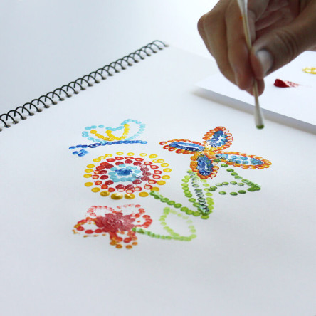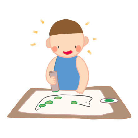 스펀지 도장을 찍어 그림을 완성하며 눈과 손의 협응력과 집중력을 기릅니다.