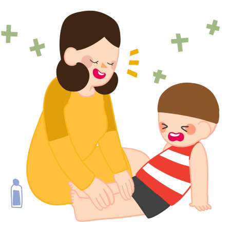 - 아기 그림을 보여주며 아기에게 황토 마사지를 해주자고 제안합니다.