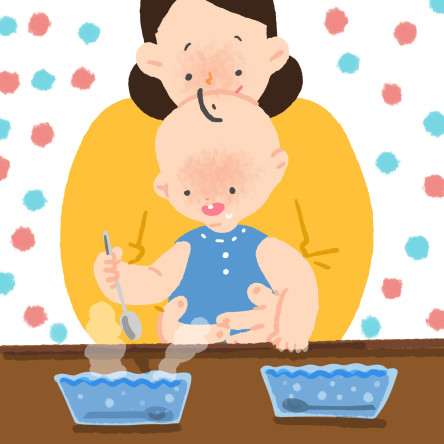 숟가락을 잡아요